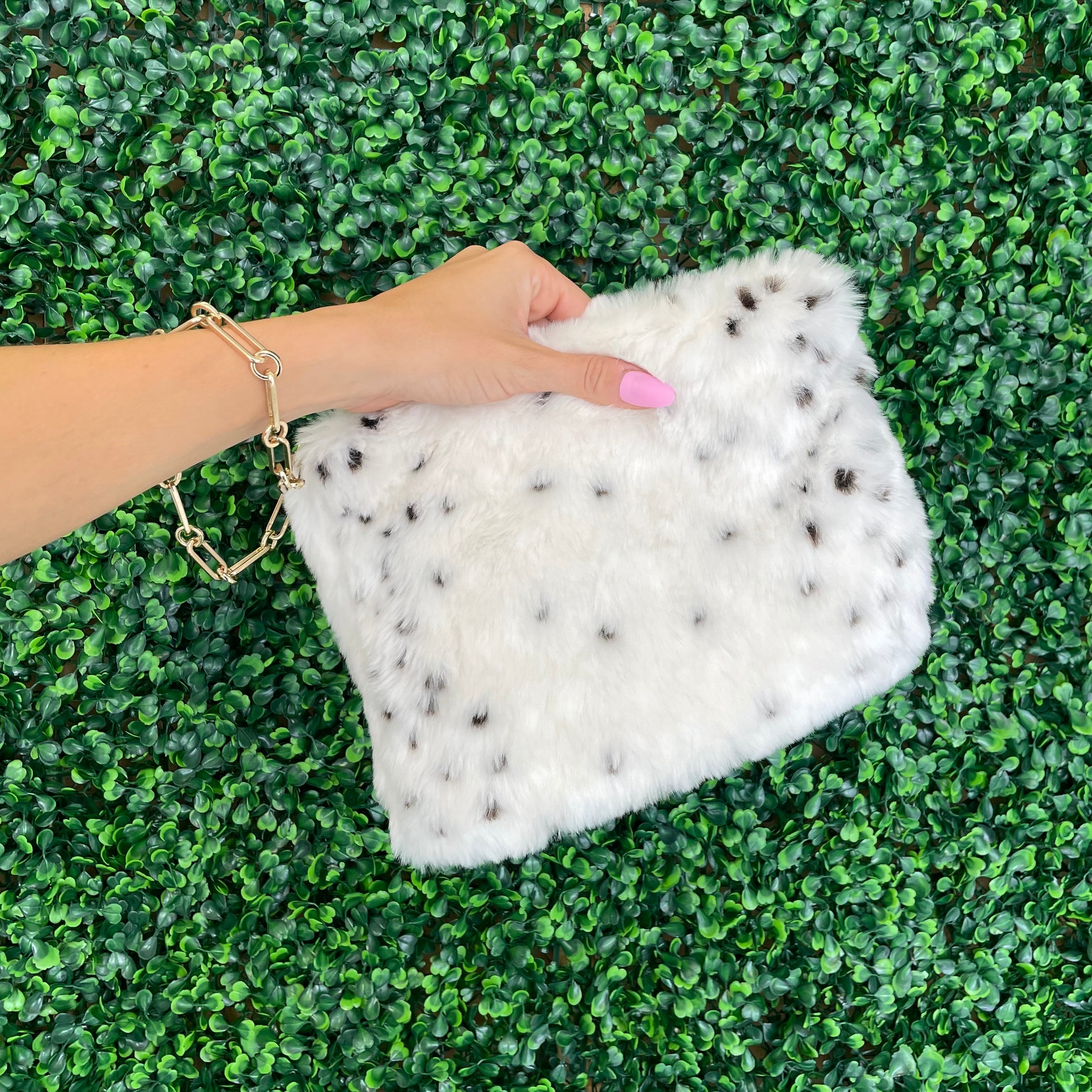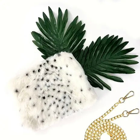 Hand made faux fur clutch that comes with a gold purse chain clutch strap. Perfect for to spice up your outfit for date night or a night out on the town.